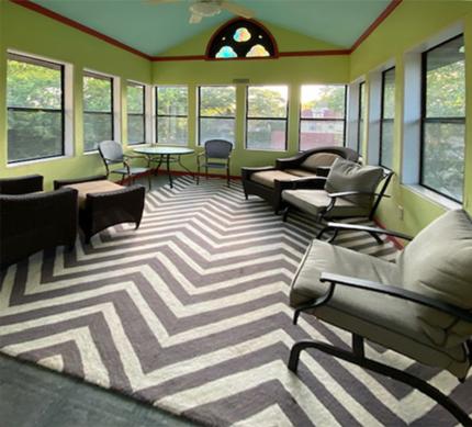 - Screened porch overlooking the Mississippi River valley.